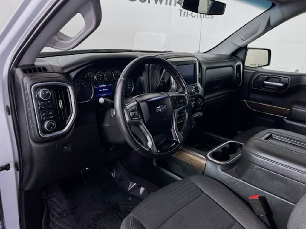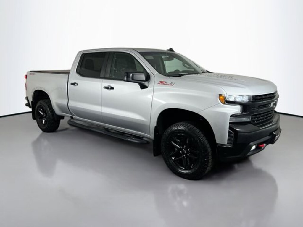 A tough truck, our Accident-Free 2021 Chevrolet Silverado 1500 LT Trail Boss Crew Cab 4X4 can take charge on the road or off in Silver Ice Metallic! Motivated by a 6.2 Liter EcoTec3 V8 generating 420hp connected to a 10 Speed Automatic transmission for towing, hauling, and having fun. This Four Wheel Drive truck lives up to its trail-friendly billing with a 2-speed transfer case, a locking rear differential, and a Z71 off-road suspension, and it scores nearly 19mpg on the highway. Designed to show off, our Silverado's design boasts LED lighting, black alloy wheels, red recovery hooks, an EZ Lift power lock/release tailgate, robust skid plates, step bars, tonneau cover, and a CornerStep rear bumper.
