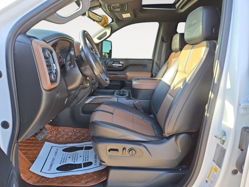 Our Accident-Free 2021 Chevrolet Silverado 2500 High Country Crew Cab 4X4 with the Technology Package sets the pace with power and a bold Iridescent Pearl Tricoat design! Motivated by a 6.6 Liter V8 supplying 401hp connected to a 6 Speed Automatic transmission that gets you in gear for the toughest jobs. This Four Wheel Drive truck also adds fearsome off-road capabilities with features like an Autotrac two-speed transfer case. On the road or off, you'll be rolling in style thanks to LED lighting, fog lamps, chrome assist steps, matching mirror caps, side/corner bed steps, a power up/down tailgate, spray-on Bedliner, a sunroof, a polished exhaust tip, and 20-inch alloy wheels.