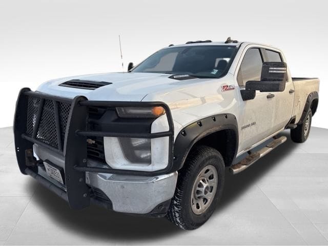 A Diesel powered workhorse, our 2021 Chevrolet Silverado 3500 W/T Crew Cab 4X4 is built for work with bold capability in Summit White! Motivated by a TurboCharged 6.6 Liter DuraMax Diesel V8 providing 445hp and 910lb-ft of torque 10 Speed Allison Automatic transmission with a tow/haul mode. An auto-locking rear differential is standard for sure-footed traction, and this Four Wheel Drive truck builds confidence with a responsive suspension. Our Silverado 3500 also greets you with a rugged, high-function exterior with integrated bed steps, CornerStep rear bumpers, halogen headlamps, vertical trailering mirrors, cargo-bed lighting, recovery hooks, a topper with a roof rack, a massive grille guard, riveted black fender flares, and a trailer hitch.