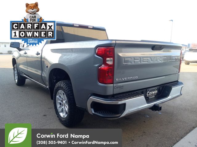 Our versatile Accident Free, One Owner 2022 Chevrolet Silverado 1500 LTD LT Crew Cab 4X2 in Satin Steel Metallic is here to pick up where other trucks leave off! Motivated by a 2.7L Turbo delivering 310hp paired to an 8 Speed Automatic transmission to help you get down to business. This Rear Wheel Drive truck also adds to its capability with an automatic locking rear differential, and it sees nearly 22mpg on the highway. Bold and brawny, our Silverado makes a big impression with its chrome accents, LED lighting, heated power mirrors, an EZ Lift power lock/release tailgate, alloy wheels, and a trailer hitch with guidance.