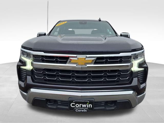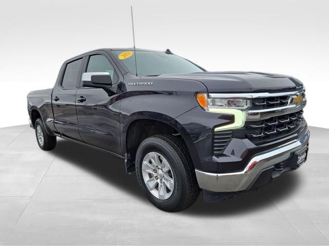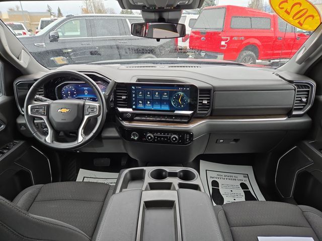 Our Low Mile 2023 Chevrolet Silverado 1500 LT Crew Cab Short Bed 4X4 is a wise choice for working smarter in Dark Ash Metallic! Powered by a 5.3 Liter V8 delivering 355hp to a 10 Speed Automatic transmission for top-notch towing and hauling. This Four Wheel Drive truck also has an Eaton automatic locking rear differential for better traction, and it scores nearly 20mpg on the highway. The upscale exterior features high-intensity LED headlamps, chrome bumpers, matching mirror caps, a rear CornerStep, cargo-bed lighting, black recovery hooks, an EZ-Lift power lock/release tailgate, heated power mirrors, and a trailer hitch with Hitch Guidance. This is a Silverado of style and substance!