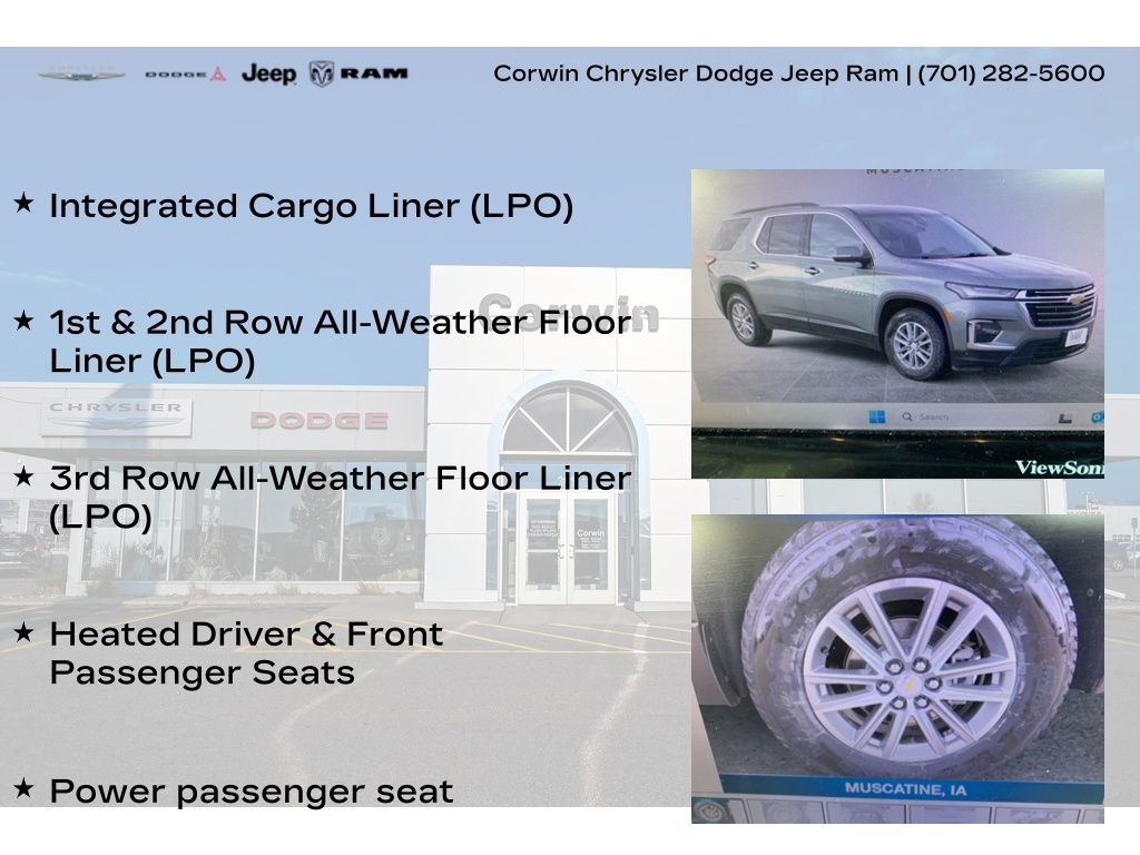 EMBRACE THE SHORTEST MONTH OF THE YEAR WITH CORWIN CHRYSLER DODGE JEEP RAM OF FARGO! WE HAVE SAVINGS ON ALL OF OUR PRE-OWNED VEHICLES AVAILABLE!! WE HAVE ONE OF THE LARGEST SELECTIONS OF INVENTORIES IN OUR AREA AT ONE SINGLE LOCATION!! Recent Arrival! Silver Sage Metallic 2023 Chevrolet Traverse LT Leather 4D Sport Utility AWD 3.6L V6 SIDI VVT CARFAX One-Owner. Clean CARFAX.