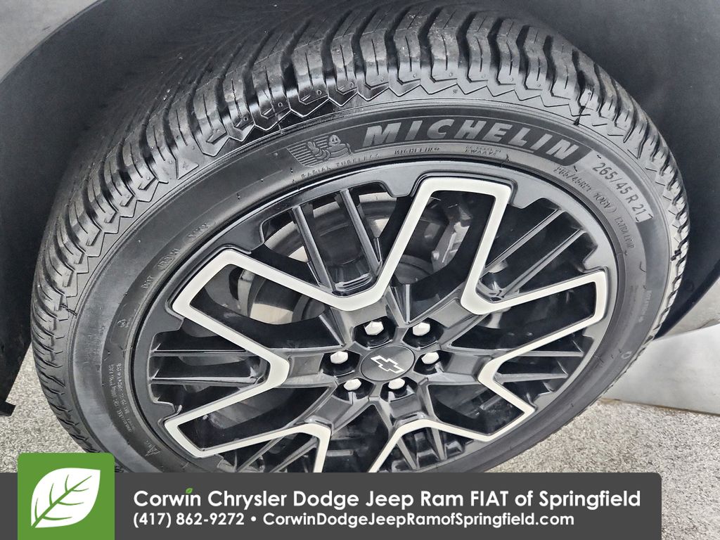 The exterior of the Blazer RS is equally striking, with a bold, muscular design that commands attention. The sleek White paint and Black two-tone roof create a stunning contrast, while the 21-inch High Gloss Black wheels with Machined Face add a touch of sportiness.