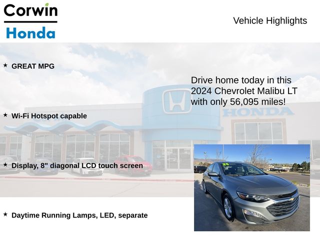 Discover the perfect blend of style, efficiency, and modern technology in the 2024 Chevrolet Malibu LT 1LT. This sleek and sophisticated sedan is designed to elevate your driving experience, offering a compelling combination of performance, comfort, and convenience.