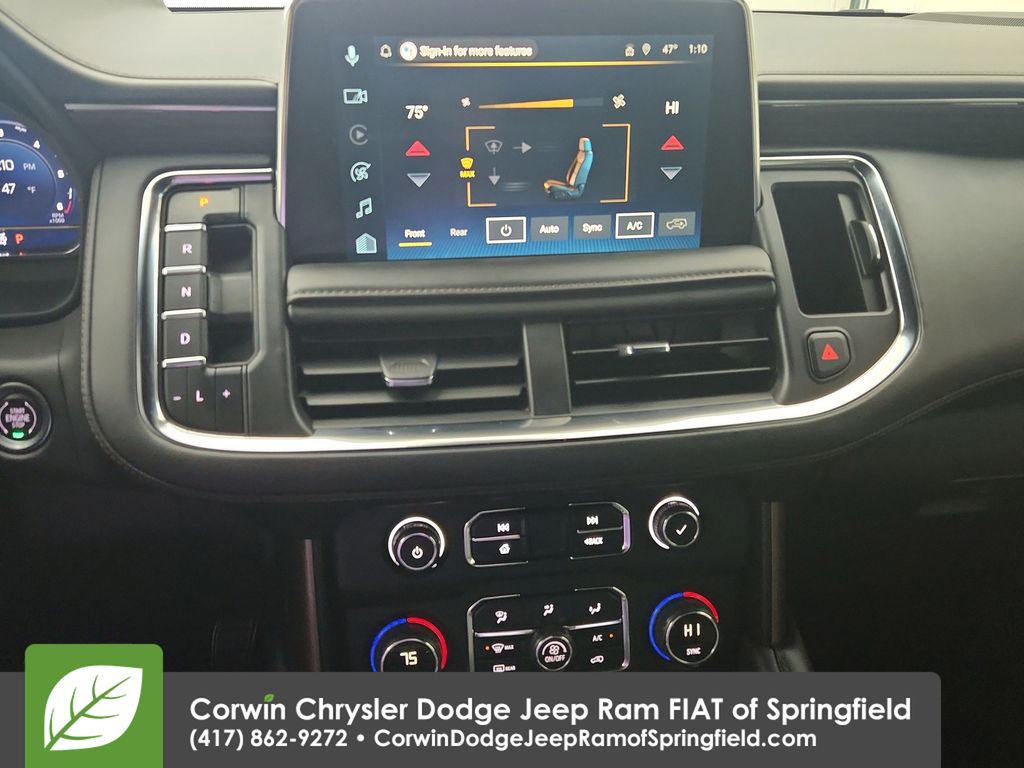 Corwin Chrysler Dodge Jeep Ram Fiat is pleased to offer this. Chevrolet Tahoe that is well equipped and includes these key features and benefits, Heated and Cooled Seats, Heated Seats, Touchscreen Controls, Backup Camera, Keyless Access with Push Button Start, Automatic Headlights, Voice Recognition, Bluetooth Hands-Free, 4x4 / 4 Wheel Drive / AWD, iPhone Integration, 15" Diagonal Multi-Color Head-Up Display, 1st & 2nd Row Color-Keyed Carpeted Floor Mats, 2-Speed Active Electronic AutoTrac Transfer Case, 3rd Row 60/40 Power-Folding Split-Bench Seat, Adaptive Cruise Control, Bose 10-Speaker Centerpoint Surround Audio Sys Ft, Bright Front & Rear Door Sill Plates, Chrome Door Handles w/Body-Color Strip, Color-Keyed Carpeting Floor Covering, Driver & Front Outboard Passenger Airbags, Dual Exhaust System, Enhanced Automatic Emergency Braking, Enhanced Driver Information Center, Floor Console, Hands-Free Rear Power Programmable Liftgate, HD Surround Vision, Heated 2nd Row Outboard Seats, Heated Steering Wheel, Hill Descent Control, Inside Rearview Auto-Dimming Rear Camera Mirror, Lane Change Alert w/Side Blind Zone Alert, LED Daytime Running Lamps, Memory Settings, Navigation System, Outside Heated Power-Adjustable Mirrors, Power Release 2nd Row Bucket Seats, Power Tilt & Telescopic Steering Column, Preferred Equipment Group 3LZ, Rear Camera Mirror Washer, Rear Cross Traffic Alert, Rear Pedestrian Alert, Remote Start, Safety Alert Seat, SiriusXM w/360L, Universal Home Remote, Wheels: 22" x 9" Sterling Silver Premium Painted, Wireless Charging, Wrapped Steering Wheel.