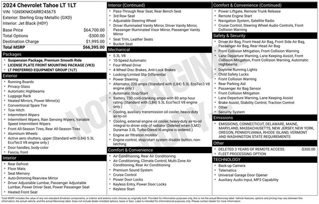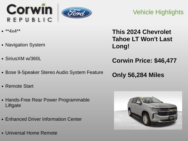 2024 Chevrolet Tahoe LT 4WD 10-Speed Automatic with Overdrive EcoTec3 5.3L V8 Sterling Gray Metallic
