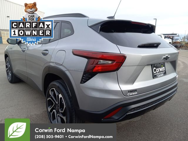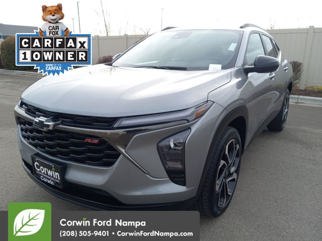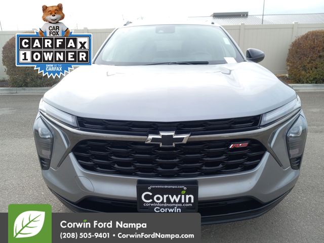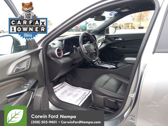 Our Accident Free, One Owner 2024 Chevrolet Trax 2RS combines aggressive good looks and impressive versatility in Sterling Gray Metallic! Powered by a TurboCharged 1.2 Liter 3 Cylinder serving up 137hp to a 6 Speed Automatic transmission. For a bold boost of acceleration. Easy to maneuver in town, this Front Wheel Drive SUV also sees nearly 32mpg on the highway. Our Trax makes a dynamic impression with its LED lighting, 19-inch black alloy wheels, high-gloss black heated power mirrors, black Bowties, red badging, roof rails, a rear spoiler, and a front recovery hook.
