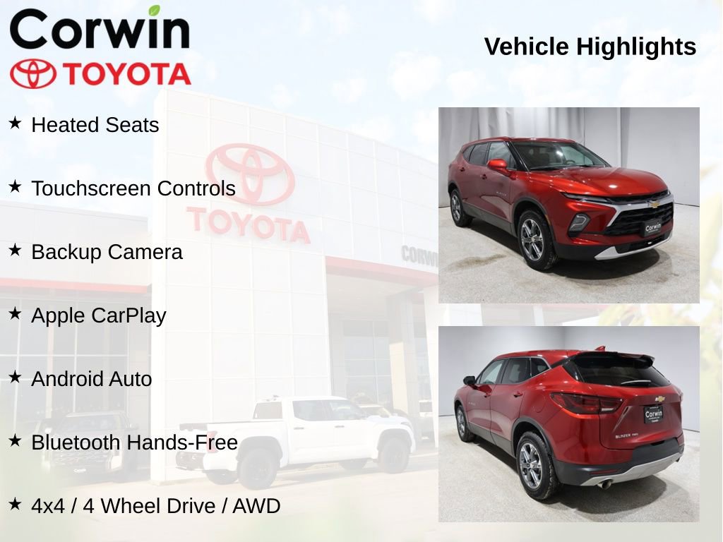 Under the hood, the Blazer LT is powered by a 2.0L Turbocharged engine paired with a 9-Speed Automatic transmission with Overdrive and AWD. This powertrain delivers an exceptional blend of power and efficiency, with an EPA-estimated 22 MPG in the city and 27 MPG on the highway.
