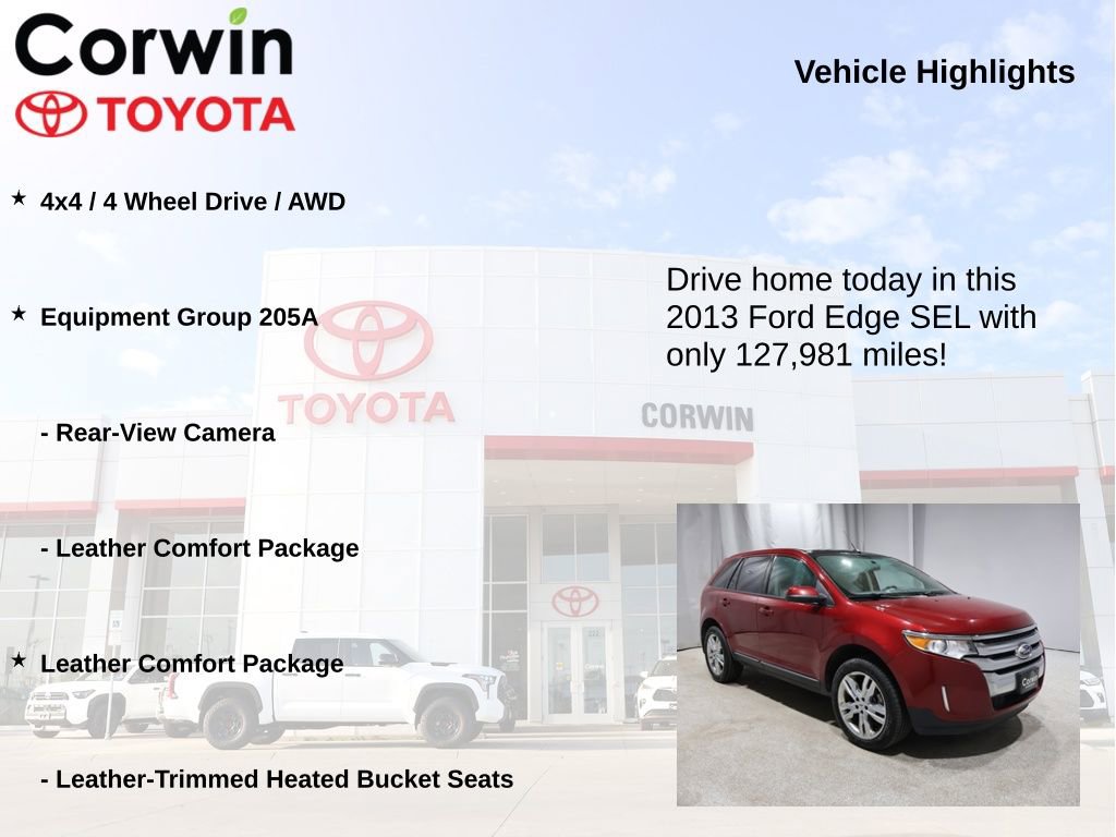Discover the perfect blend of style, capability, and technology in this meticulously maintained 2013 Ford Edge SEL. With its striking Ruby Red Metallic exterior and well-appointed interior, this SUV is ready to elevate your driving experience.