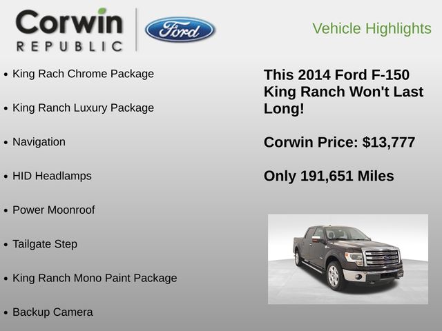 Recent Arrival! King Rach Chrome Package, King Ranch Luxury Package, Navigation, HID Headlamps, Power Moonroof, Tailgate Step, King Ranch Mono Paint Package, Backup Camera, Rear Parking Sensors, Universal Garage Door Opener, 4WD.