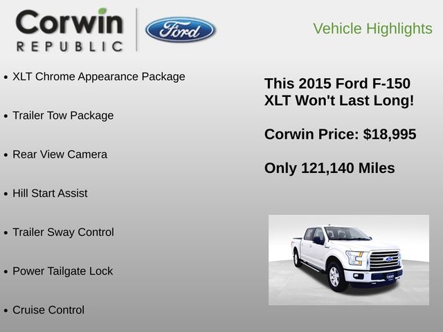Experience the confidence and capability of this 2015 Ford F-150 XLT. Visit our showroom today and let our knowledgeable team demonstrate all that this impressive truck has to offer.