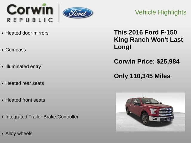 Experience the difference for yourself. Visit our showroom today and let us demonstrate the exceptional capabilities and premium features of this 2016 Ford F-150 King Ranch. We're confident you'll be impressed by its uncompromising performance and refined, luxurious design.