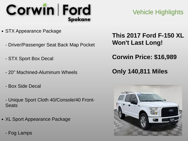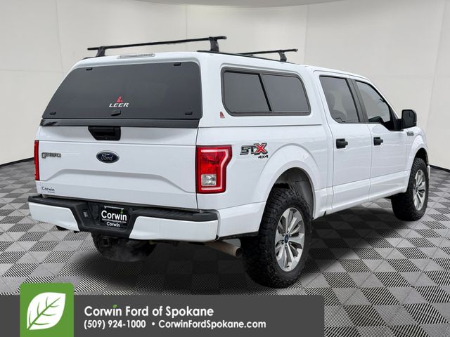 Recent Arrival! Powerful and productive, our One Owner, No Accidents Reported 2017 Ford F-150 XL SuperCrew 4X4 with the STX Appearance Package puts mighty muscle at your command in Oxford White! Motivated by a 5.0 Liter V8 offering 385hp tethered to a 10 Speed Automatic transmission with sport and tow/haul modes for tailored performance. This Four Wheel Drive truck also scores nearly 24mpg on the highway with composed handling and a confident design. Check out our F-150's STX Appearance Pack's privacy glass, 20-inch wheels, fog lights, STX decal, Carbon Black grille, matching bumpers, cargo-bed lighting, locking/removable tailgate, topper, and halogen headlamps.