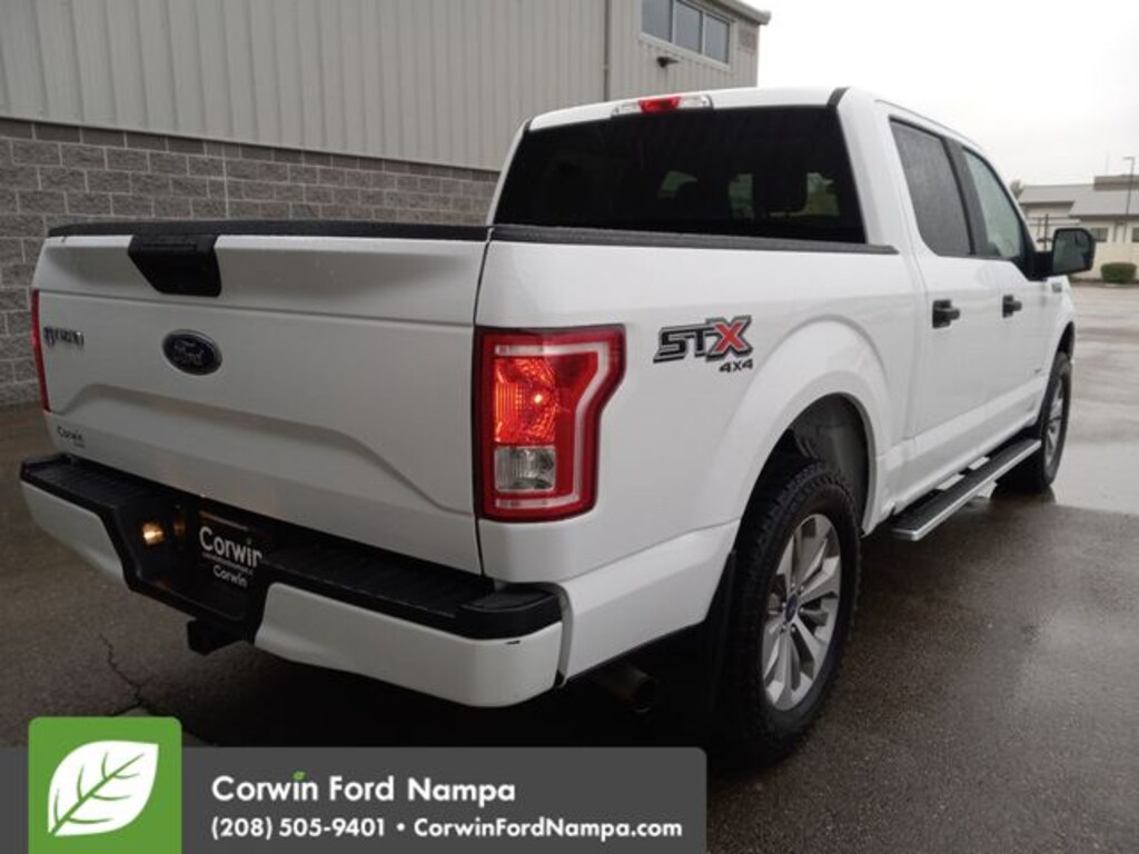 Powerful and productive, our Accident Free with Low Mileage 2017 Ford F-150 XL SuperCrew 4X4 with STX Pack puts mighty muscle at your command in Oxford White! Motivated by a Twin-TurboCharged 2.7 Liter V6 offering 325hp tethered to a 10 Speed Automatic transmission with sport and tow/haul modes for tailored performance. This Four Wheel Drive truck also scores nearly 25mpg on the highway with composed handling and a confident design. Check out our F-150's Carbon Black grille, matching bumpers, running boards, a spray-on bedliner, cargo-bed lighting, locking/removable tailgate, and halogen headlamps.