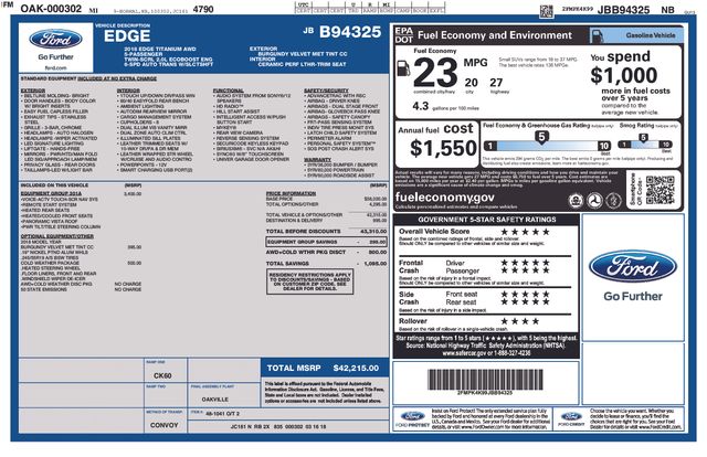 Equipped with the powerful EcoBoost 2.0L I4 engine and 6-speed automatic transmission, this Edge Titanium delivers an exceptional driving experience with 20 city and 27 highway mpg. The all-wheel-drive system ensures confident handling in all weather conditions, while the premium features elevate your daily commute or weekend adventures.