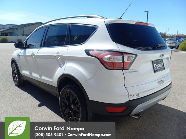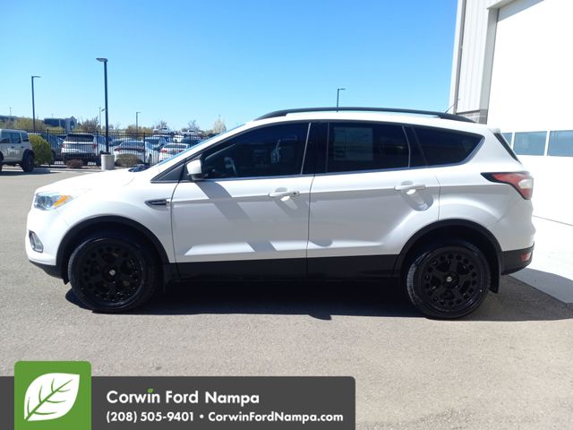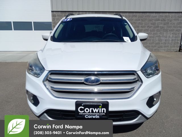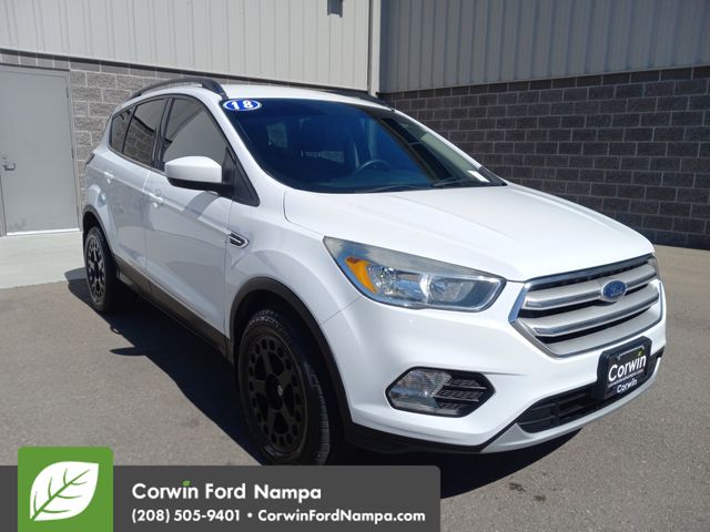 The driver's seat of our Accident Free 2018 Ford Escape SE 4WD in Oxford White is just your first stop on the way to better adventures! Powered by a TurboCharged 1.5 Liter EcoBoost 4 Cylinder that offers 179hp connected to a robust 6 Speed Automatic transmission for easy passing. This Four Wheel Drive SUV handles beautifully with precise steering, impressive response, and nimble agility, and it sees nearly 30mpg on the road. You'll turn heads, too, with our Escape's sporty hexagonal grille, sparkle-silver alloy wheels, dual bright exhaust tips, fog lamps, and a rugged roof rack with side rails.