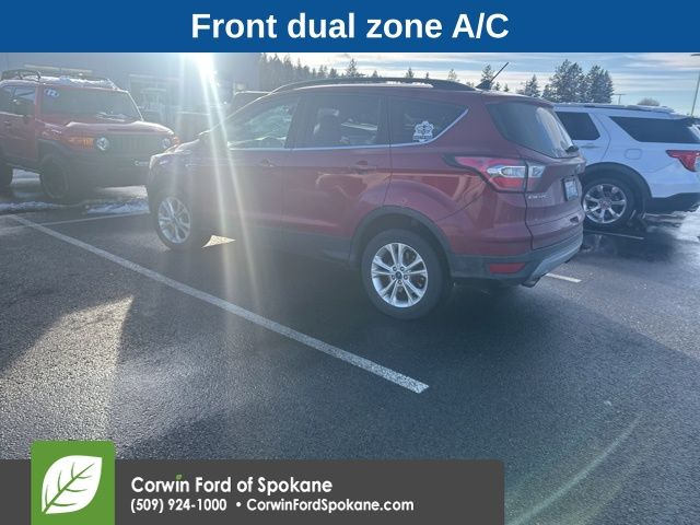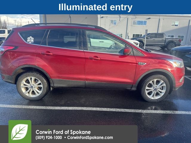 Recent Arrival! Our One Owner, No Accidents Reported 2018 Ford Escape SEL 4WD in Ruby Red has the style you demand! Powered by a TurboCharged 1.5 Liter EcoBoost 4 Cylinder generating 179hp paired with a paddle-shifted 6 Speed Automatic transmission. Our Four Wheel Drive SUV handles beautifully with precise steering, incredible response, and agility and offers nearly 28mpg on the highway. This Escape SEL turns heads with a prominent hexagonal upper grille, sparkle-silver wheels, dual chrome exhaust tips, fog lamps, a sculpted hood, a sunroof, and an athletic stance.