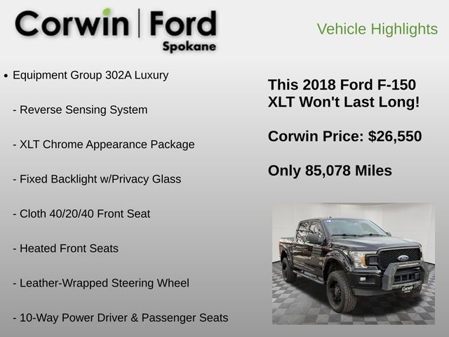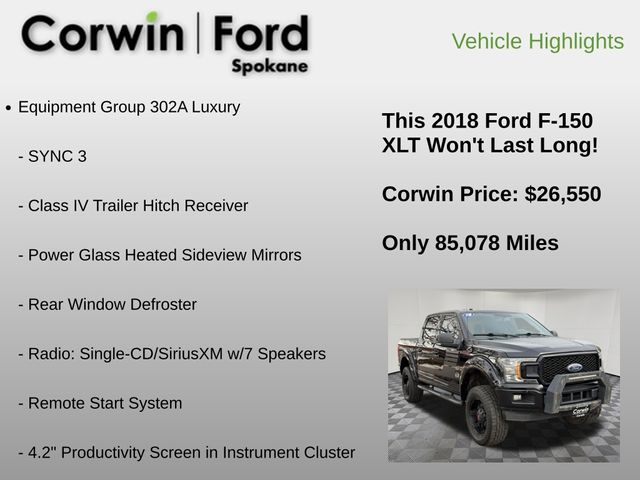 At our dealership, we take pride in offering our customers the highest-quality vehicles and an exceptional purchasing experience. We invite you to come in and take a closer look at this 2018 Ford F-150 XLT. Our knowledgeable sales team is here to answer any questions you may have and help you discover how this remarkable truck can enhance your driving lifestyle. Don't miss your opportunity to own this impressive F-150 â" schedule a test drive today and let us show you why it's the perfect choice for your next vehicle.