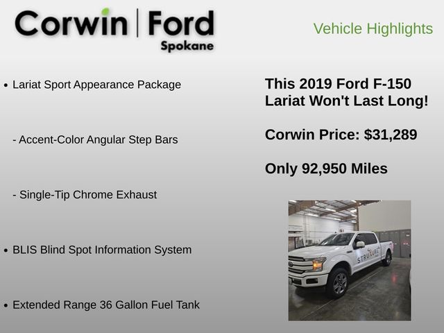 Ford offers a high-strength steel frame, sophisticated technologies like ABS with automatic emergency braking, and a backup camera for your peace of mind. With advantages like that, it's no wonder our F-150 Lariat is so popular! Save this Page and Call for Availability. We Know You Will Enjoy Your Corwin Ford Spokane Test Drive Towards Ownership! See us today at Corwin Ford Spokane. Family owned for over 100 years! Excellent selection of New and Used vehicles, Financing options. Serving Spokane, Pasco, Kennewick, Richland, Walla Walla, Hermiston, Umatilla, Yakima, Sunnyside, Grandview, Dayton, Prescott, Denton County, Franklin County, Yakima County, Spokane County, Adams County, Grant County, and the Greater Columbia Basin. *All Prices plus applicable sales tax, license, and a negotiable documentary service fee up to $200 may be added to sales price or capitalized cost of the vehicle. One vehicle unless otherwise noted and subject to prior sale without notice. While supplies last. EPA mileage estimates are for newly manufactured vehicles only. Your actual mileage will vary depending on how you drive and maintain your vehicle.