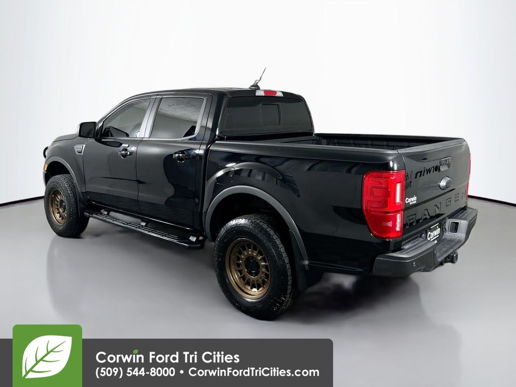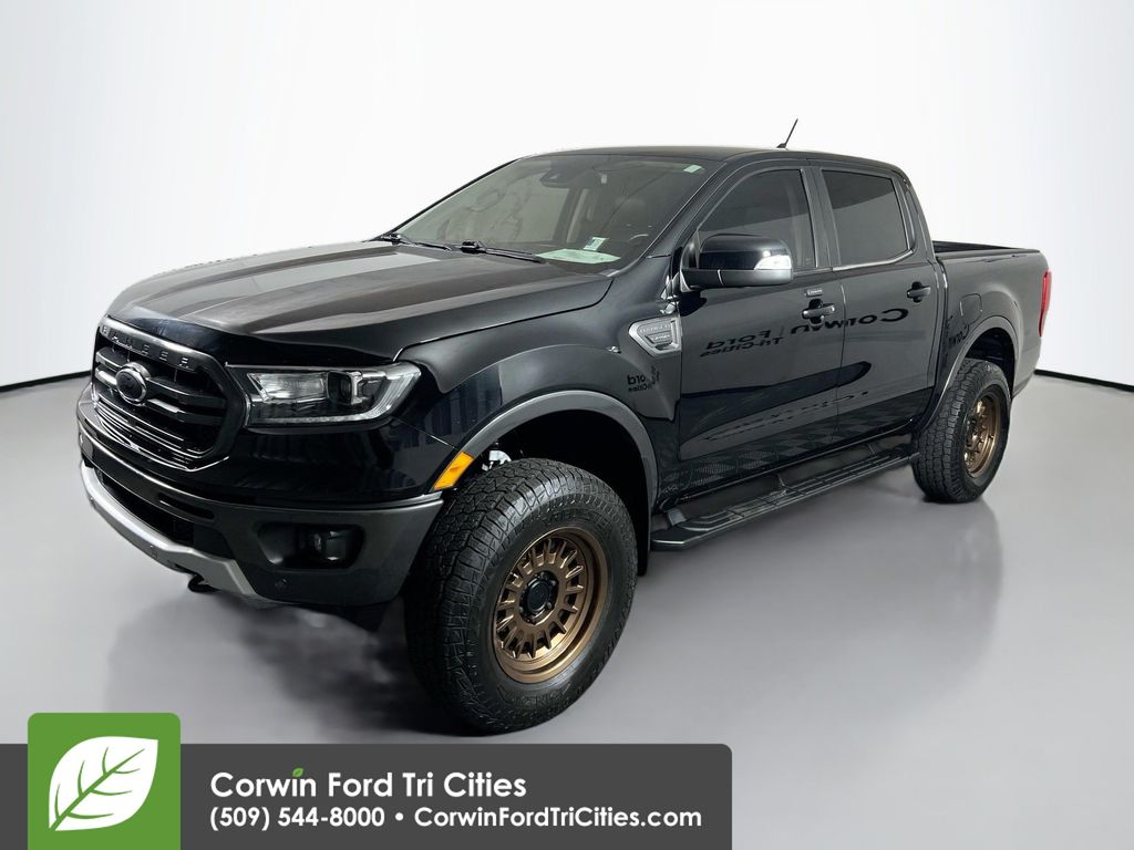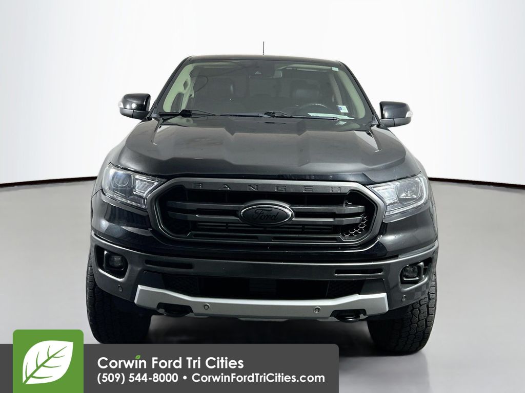 Our grand-looking, Accident Free 2019 Ford Ranger Lariat SuperCrew 4X4 with the FX4 Off-Road, Sport Appearance and Trailer Tow Packages in Shadow Black is a head-turner! Powered by a TurboCharged 2.3 Liter EcoBoost 4 Cylinder that offers 270hp connected to an innovative 10 Speed Automatic transmission. Master each day with robust performance with our Four Wheel Drive Ranger, which results in an incredible economy of nearly 25mpg on the highway, solid towing and payload capacity, and shows off a body color grille and bumpers, step bars, aftermarket wheels, LED box lighting, and fog lights.