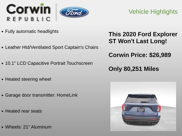 2020 Ford Explorer ST 4WD 10-Speed Automatic 3.0L EcoBoost V6 Blue