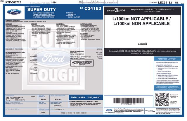 This 2020 Ford F-350SD Lariat is a powerful and well-equipped heavy-duty pickup that is ready to take on your toughest jobs. With its impressive 6.7L Power Stroke V8 Turbodiesel engine, 10-speed automatic transmission, and 4-wheel drive, this F-350 delivers exceptional performance and capability.
