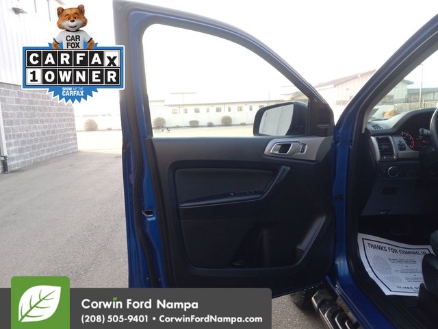 Our One Owner, Low Mileage 2020 Ford Ranger XLT SuperCrew 4X4 with FX4 Off-Road Pack is ready for action in Blue Lightning! Powered by a TurboCharged 2.3 Liter EcoBoost 4 Cylinder offering 270hp connected to a 10 Speed Automatic transmission. You can also enjoy responsive handling in this Four Wheel Drive truck, which sees nearly 24mpg on the road. And you'll be looking good simultaneously with fog lights, alloy wheels, tow hooks, LED taillamps, power-adjustable mirrors, running boards, and a sporty black mesh grille.