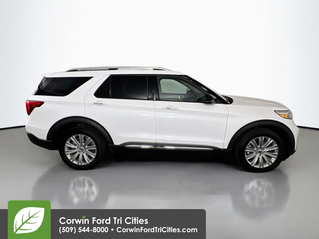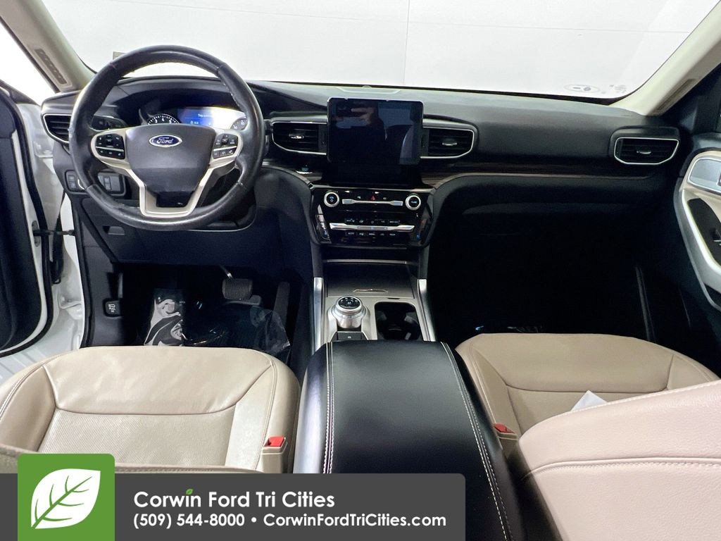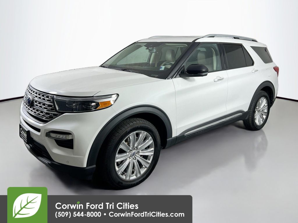 Our luxurious 2021 Ford Explorer Limited 4WD is geared for great adventures with a bold Star White Metallic Tri-Coat design! Motivated by a 3.3 Liter V6 and an Electric Motor offering a combined 319hp tethered to a 10 Speed SelectShift Automatic transmission for efficient strength and easy passing. With responsive handling and the ability to see nearly 26mpg on the highway, this Four Wheel Drive SUV showcases upscale cues like LED lighting, fog lamps, dual chrome exhaust tips, twin-panel sunroof, a power liftgate, and 20-inch alloy wheels.