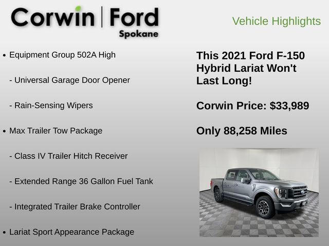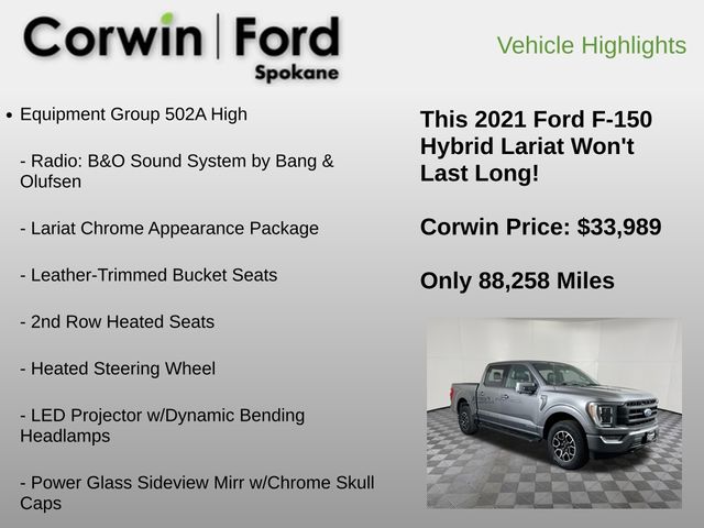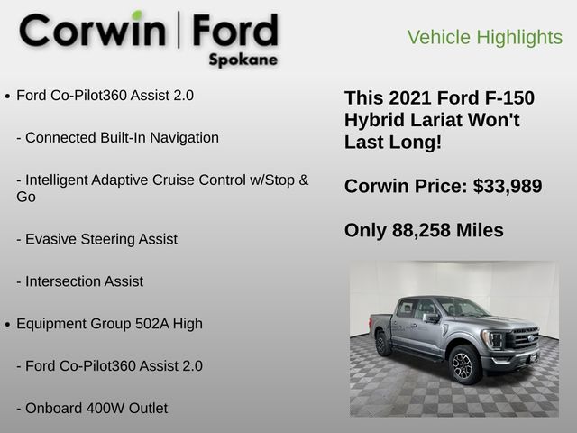This 2021 Ford F-150 Lariat is a powerful and well-equipped truck that offers an exceptional driving experience. With its impressive 3.5L PowerBoost Full-Hybrid V6 engine, this F-150 delivers exceptional fuel efficiency without compromising performance.