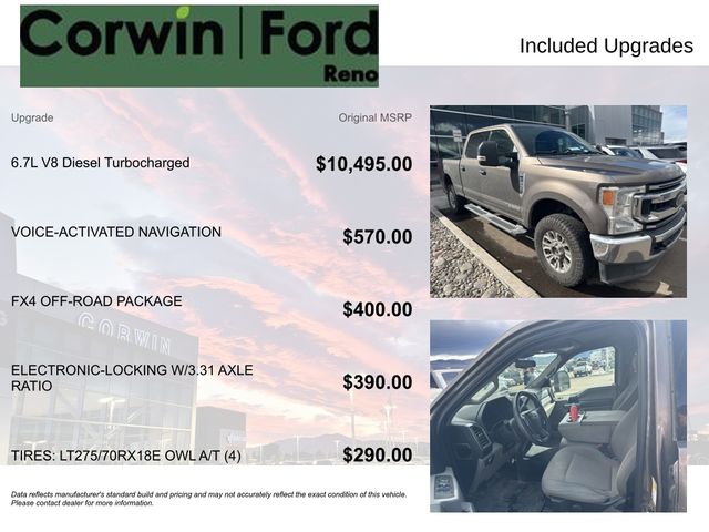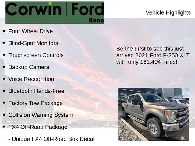 Recent Arrival! This Ford F-250SD is well equipped and includes these key features and benefits, Four Wheel Drive, Blind-Spot Monitors, Touchscreen Controls, Backup Camera, Voice Recognition, Bluetooth Hands-Free, Factory Tow Package, Collision Warning System, FX4 Off-Road Package, GVWR: 10,000 lb Payload Package, Hill Descent Control, Off-Road Specifically Tuned Shock Absorbers, Order Code 603A, Unique FX4 Off-Road Box Decal, Voice-Activated Navigation. CARFAX One-Owner. Available at Corwin Ford Reno located at 11111 South Virginia St.