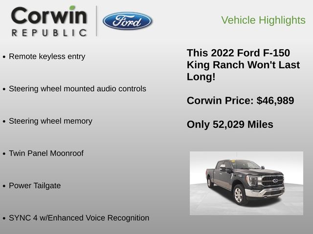2022 Ford F-150 King Ranch 4WD 10-Speed Automatic 5.0L V8 Agate Black Metallic