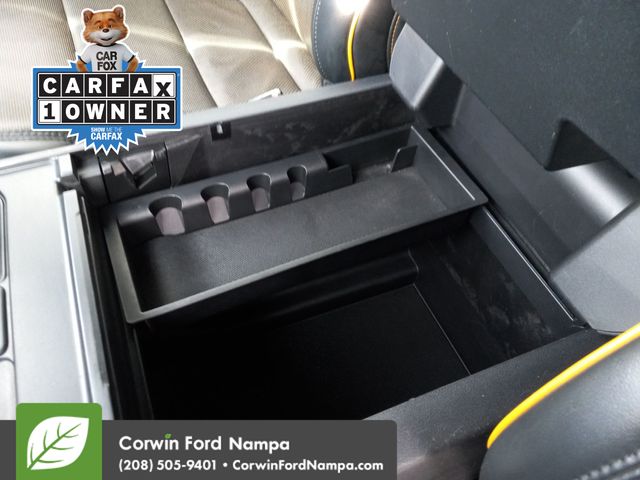 A nearly perfect command post for adventure, our Tremor cabin is outfitted with a twin panel sunroof, heated/ventilated leather front seats and a 12-inch productivity screen from our package, plus it has a multifunction steering wheel, air conditioning, cruise control, power accessories, a 12V powerpoint, and premium technologies. It all starts with a SYNC 4 infotainment setup with an 8-inch touchscreen, wireless Android Auto®/Apple CarPlay®, WiFi compatibility, Bluetooth®, and an upscale stereo.