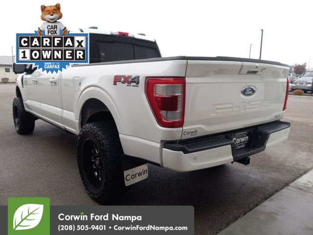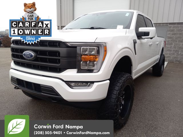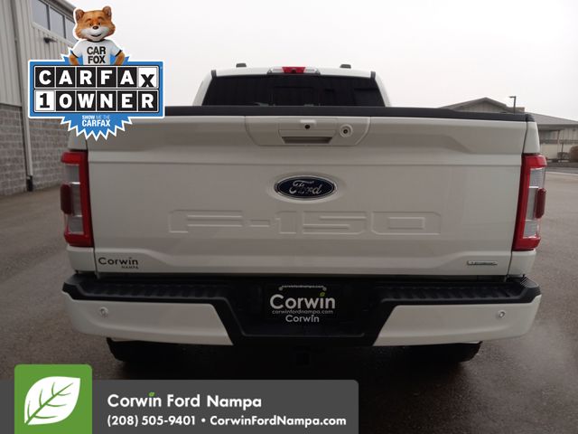 Our impressive Accident Free, One Owner 2022 Ford F-150 Lariat SuperCrew 4X4 with FX4 Off-Road Pack in Star White Metallic Tri-Coat has been rigorously tested, so it treats you right! Motivated by a Twin-TurboCharged 3.5 Liter EcoBoost V6 offering 400hp paired to a 10 Speed SelectShift Automatic transmission for torque-friendly towing and hauling. This Four Wheel Drive truck also returns nearly 23mpg on the highway. It shows off a proud and purposeful design with LED lighting, fog lamps, chrome bumpers, running boards, heated power-folding mirrors, bold alloy wheels, and a high-strength bed with the BoxLink cargo-management system. With those features, you can make an impression on the town and the job site!