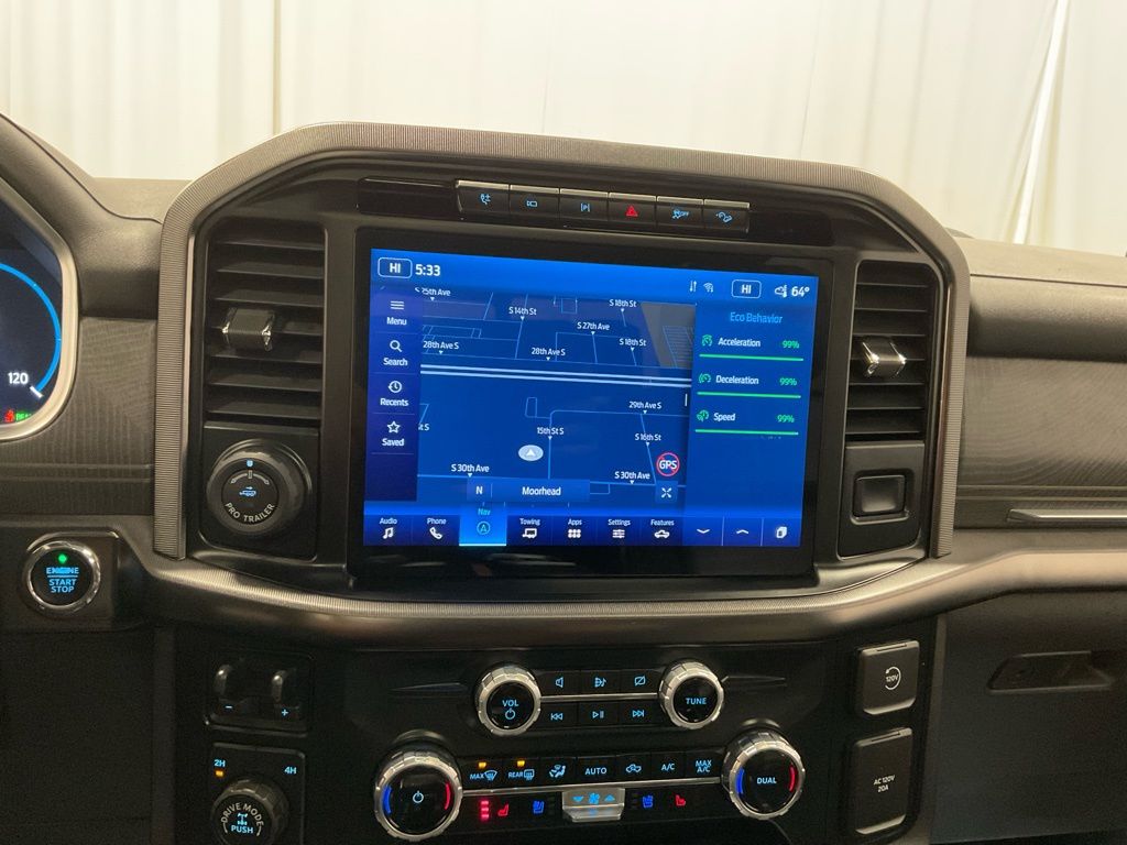 This Ford F-150 is well equipped and includes the following features and benefits, Collision Warning System, Blind-Spot Monitors, Touchscreen Controls, Apple CarPlay, Android Auto, Super Clean, Low Miles, 3.5L PowerBoost Full-Hybrid V6, 4WD, 360 Degree Camera, 4x4 FX4 Off-Road Bodyside Decal, Bed Utility Package, BoxLink, Class IV Trailer Hitch Receiver, Electronic Locking w/3.31 Axle Ratio, Equipment Group 701A High, Extended Range 36 Gallon Fuel Tank, Ford BlueCruise 1.0, FX4 Off-Road Package, Hill Descent Control, Integrated Trailer Brake Controller, LED Box Lighting, Max Trailer Tow Package, Monotube Rear Shocks, Off-Road Tuned Front Shock Absorbers, Power Tailgate, Pro Trailer Backup Assist & Pro Trailer Hitch Assist, Radio: B&O Unleashed Sound System by Bang & Olufsen, Rock Crawl Mode, Tailgate Step w/Tailgate Work Surface, Tray Style Floor Liner.