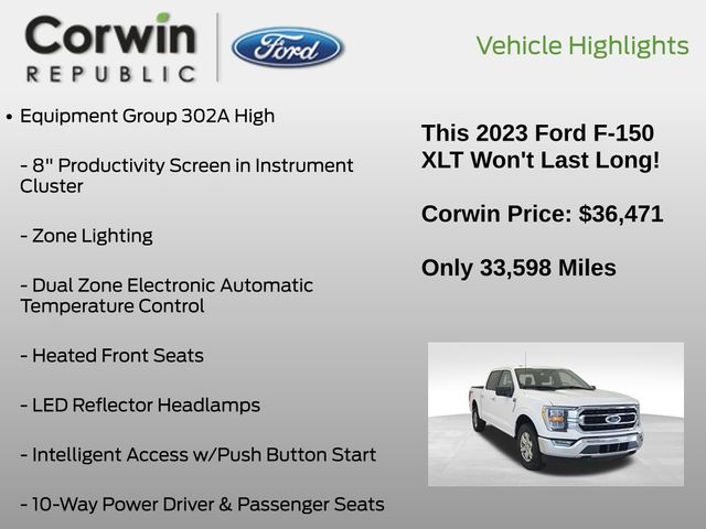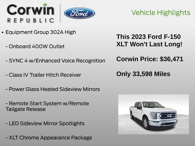 This Ford F-150 is well equipped and includes these key features and benefits, Collision Avoidance System, Collision Warning System, *Heated Seats, Blind-Spot Monitors, Lane Keeping Assist, Touchscreen Controls, Backup Camera, Keyless Access with Push Button Start, Drowsiness Alert, Automatic Headlights, Apple CarPlay, Android Auto, Voice Recognition, Bluetooth Hands-Free, ONE OWNER, iPhone Integration, MP3, FORD CERTIFIED: 12Mo/12K Comprehensive Warranty,7 Yr/100K Powertrain Warranty,, 172-pt inspection, Roadside assistance, trip-interruption services, rental car benefits, Factory Tow Package, **4x4**, 4WD, 10-Way Power Driver & Passenger Seats, 8" Productivity Screen in Instrument Cluster, ABS brakes, Alloy wheels, Class IV Trailer Hitch Receiver, Compass, Dual Zone Electronic Automatic Temperature Control, Electronic Stability Control, Equipment Group 302A High, Heated door mirrors, Heated Front Seats, Illuminated entry, Integrated Trailer Brake Controller, Intelligent Access w/Push Button Start, LED Reflector Headlamps, LED Sideview Mirror Spotlights, Low tire pressure warning, Onboard 400W Outlet, Power Glass Heated Sideview Mirrors, Pro Trailer Backup Assist & Pro Trailer Hitch Assist, Rear Under-Seat Storage, Remote keyless entry, Remote Start System w/Remote Tailgate Release, SYNC 4 w/Enhanced Voice Recognition, Traction control, Trailer Tow Package, Wrapped Steering Wheel, XLT Chrome Appearance Package, Zone Lighting. Priced below KBB Fair Purchase Price! CARFAX One-Owner. Clean CARFAX.