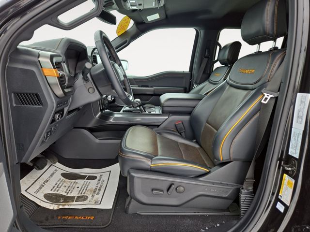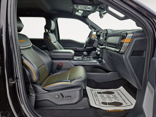 Tuned for the trail, our Accident-Free, Low Mile 2023 Ford F-150 Tremor SuperCrew 4X4 in Agate Black Metallic is a top choice for adventure! Powered by a Twin-TurboCharged 3.5 Liter EcoBoost V6 that generates 400hp for a 10 Speed SelectShift Automatic transmission. Off-road shocks and exclusive Tremor suspension components help handle rugged terrain, and this Four Wheel Drive truck returns nearly 20mpg on the highway. You've got plenty of strength for towing and hauling, too! Mighty and muscular, our F-150 makes a bold impression by showing off a unique grille with orange accents, an aggressive Tremor hood, LED lighting, step bars, skid plates, a tonneau cover, a SecuriCode keypad, premium wheels, and eye-catching graphics.