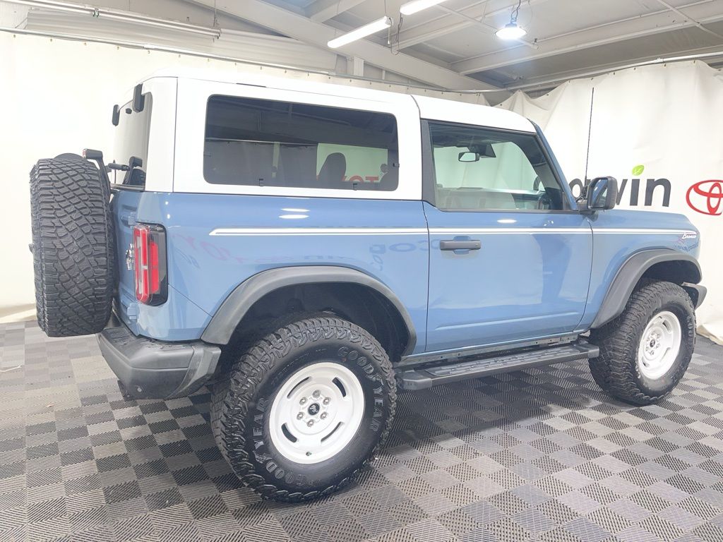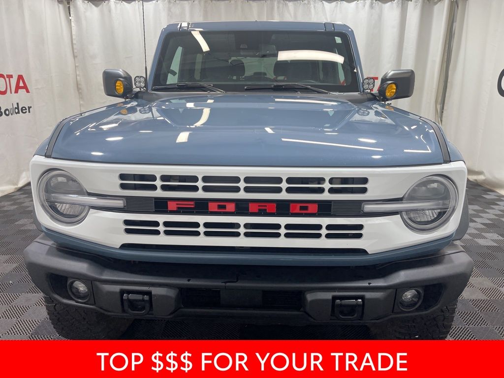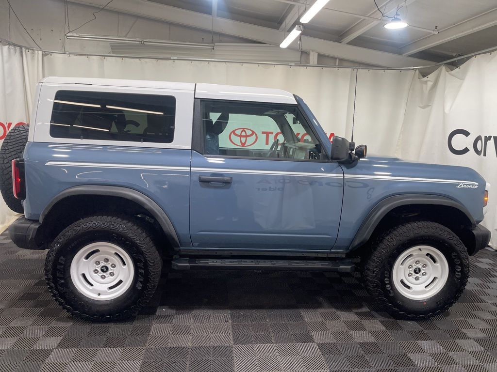 Adorned in a captivating Gray exterior, the Bronco Heritage Edition boasts a commanding presence on any terrain. Equipped with a powerful 2.7L EcoBoost V6 engine and a 10-speed automatic transmission, this 4WD beast delivers exceptional performance and capability, ready to take on any challenge. Indulge in the convenience of the - 2.7L V6 Twin Turbocharged (EcoBoost) (Includes Electric Brake Boost & 4-Wheel Disc Brakes w/Anti-Lock Brake System), 10-Speed Automatic (Includes Trail Control & Trail Turn Assist, w/99P), LED SIGNATURE LIGHTING, AUXILIARY SWITCHES, and UPGRADED CARPET FLOOR MATS.