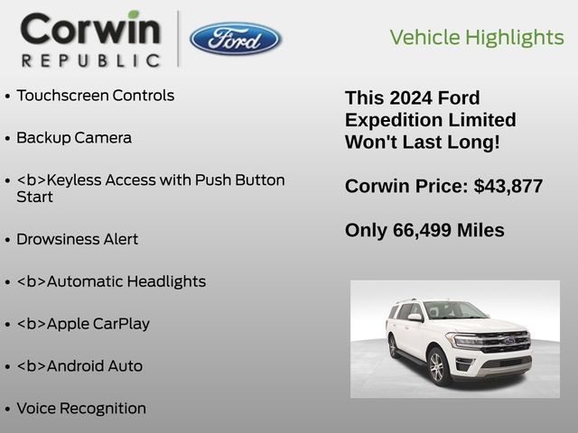 2024 Ford Expedition Limited 4WD 10-Speed Automatic EcoBoost 3.5L V6 GTDi DOHC 24V Twin Turbocharged Oxford White