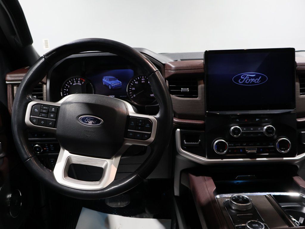 This Ford Expedition is well equipped with these key features and benefits, 360 degree Camera, *Adaptive Cruise Control, Heated and Cooled Seats, One Owner, 3rd Row Seat / Third Row / 7 Passenger Seating, 4x4/ 4 Wheel Drive / AWD, Panoramic Moonroof, 4WD, Ebony Black Mesh Grille, Equipment Group 302A High Package, Heavy-Duty Independent Suspension, Magnetic-Painted Power Deployable Running Boards, Navigation system: Connected Navigation, Panoramic Vista Roof, Power-Folding Sideview Mirrors w/Autofold, Wheels: 22" 12-Spoke Polished Aluminum. Odometer is 13324 miles below market average!