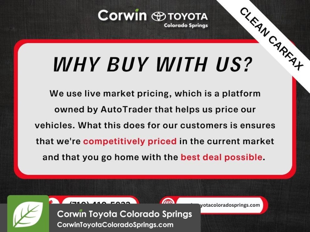 Friendly service, a huge selection of new Toyota vehicles, and fast flexible financing options are a few of the reasons why we are the new and pre-owned vehicle leaders in the greater Colorado Springs Area. Call us or stop in and see us today at Corwin Toyota Colorado Springs! Located at 5115 New Car Dr. Colorado Springs, CO 80923. (719) 598-2222 or visit us online at CorwinToyotaColoradoSprings.com. All prices must be verified with the dealer.