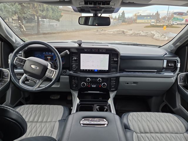 Premium advantages in our King Ranch cabin include exclusive heated/ventilated Kingsville leather power front and heated rear seats, a heated Kingsville leather power steering wheel, dual-zone automatic climate control, a power rear window, and power-adjustable pedals. Enjoy impressive digital convenience with a 12-inch touchscreen, a 12-inch driver display, connected navigation, WiFi compatibility, advanced phone connectivity, wireless charging, and B&O Unleashed audio.