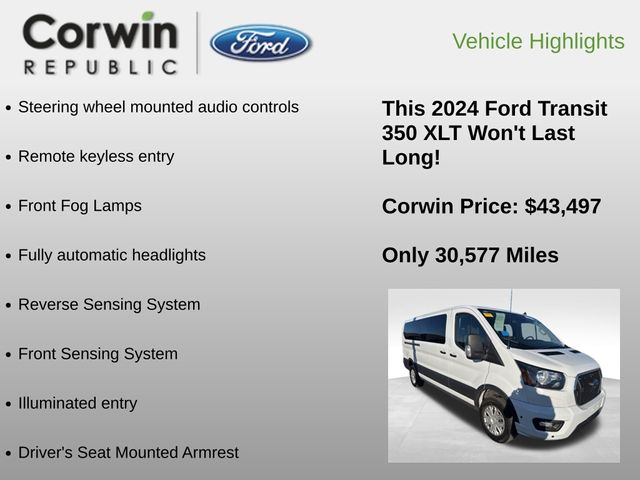 2024 Ford Transit-350 XLT RWD 10-Speed Automatic with Overdrive EcoBoost 3.5L V6 GTDi DOHC 24V Twin Turbocharged Oxford White