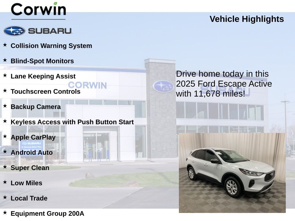 Discover the perfect blend of performance, technology, and safety in the 2025 Ford Escape Active. This versatile SUV is ready to elevate your driving experience and become an indispensable part of your lifestyle. Visit our showroom today to take a closer look and schedule a test drive.
