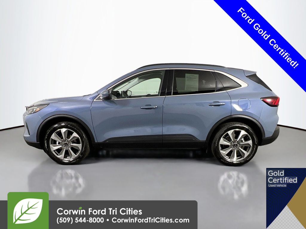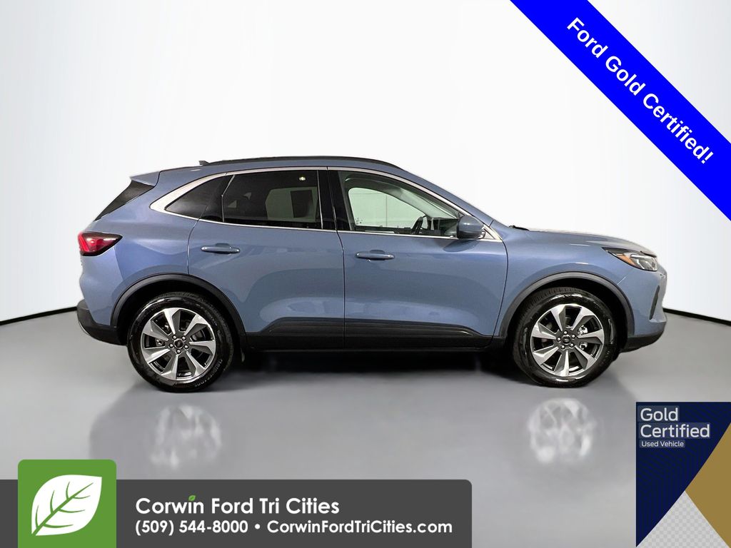 Primed for premium travel, our Accident Free, One Owner, Certified Pre-Owned 2025 Ford Escape Platinum AWD stands proud in Vapor Blue Metallic! Motivated by a TurboCharged 2.0 Liter EcoBoost 4 Cylinder delivering 250hp to an 8 Speed Automatic transmission for confident acceleration. This All Wheel Drive SUV also helps you master the miles with comfort while returning nearly 31mpg on the highway. You'll be riding in style, too, with our Escape's LED lighting, fog lamps, power liftgate, black roof rails, dual exhaust outlets, and alloy wheels.