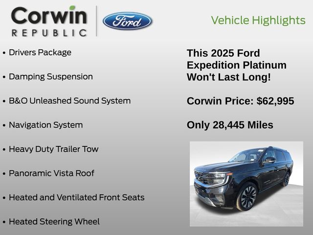 Discover the ultimate in luxury and capability with this 2025 Ford Expedition Platinum. Boasting a commanding presence and packed with premium features, this SUV is ready to elevate your driving experience.
