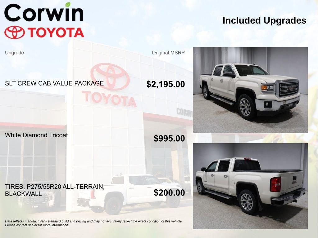 Priced below KBB Fair Purchase Price! 2014 White Diamond Tricoat GMC Sierra 1500 SLT CARFAX One-Owner.