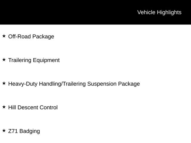 ⢠Off-Road Suspension Package with Z71 chrome fender emblems, Rancho shocks, Hill Descent Control, and underbody shield