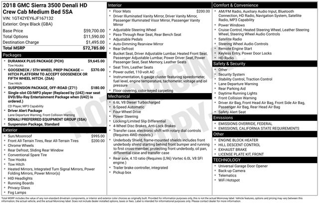 Onyx Black 2018 GMC Sierra 3500HD Denali 4D Crew Cab 4WD Duramax 6.6L V8 Turbodiesel