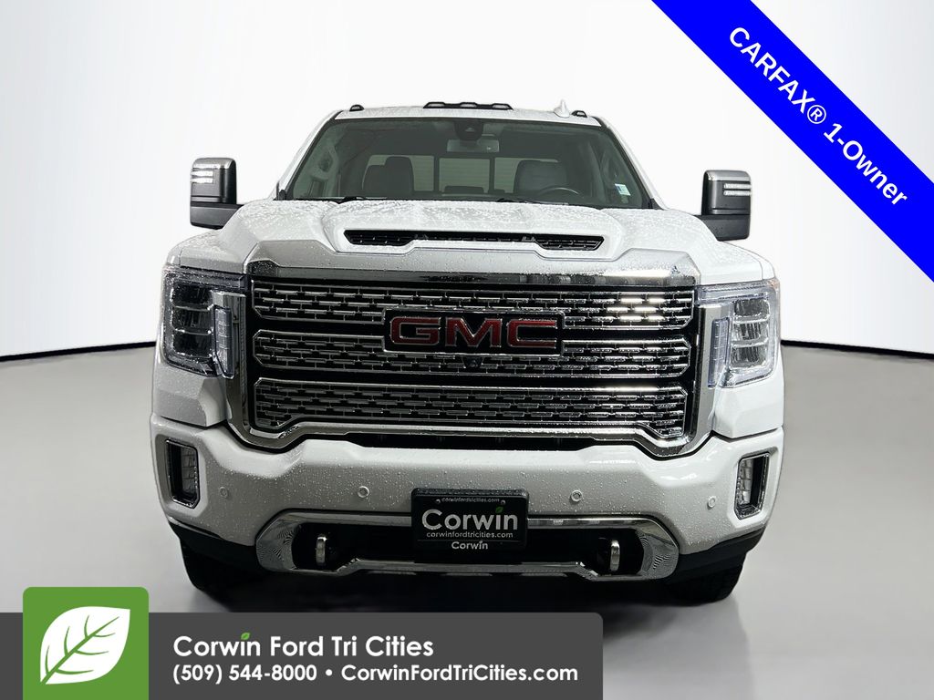 Our Diesel powered, Accident Free, One Owner 2022 GMC Sierra 3500HD Denali Crew Cab 4X4 promises incredible command and control in Summit White! Motivated by a TurboCharged 6.6 Liter DuraMax Diesel V8 offering 445hp and 910lb-ft of torque to a 10 Speed Allison Automatic transmission. This Four Wheel Drive truck dominates the daily grind with digital variable steering, an off-road suspension, an autolocking rear differential, and a ProGrade trailering system. As stylish as it is capable, our Sierra is at your service with an exclusive Denali grille, LED lighting, robust skid plates, 20-inch alloy wheels, chrome assist steps, a spray-on bedliner, a tow hitch receiver, and a six-function MultiPro tailgate.