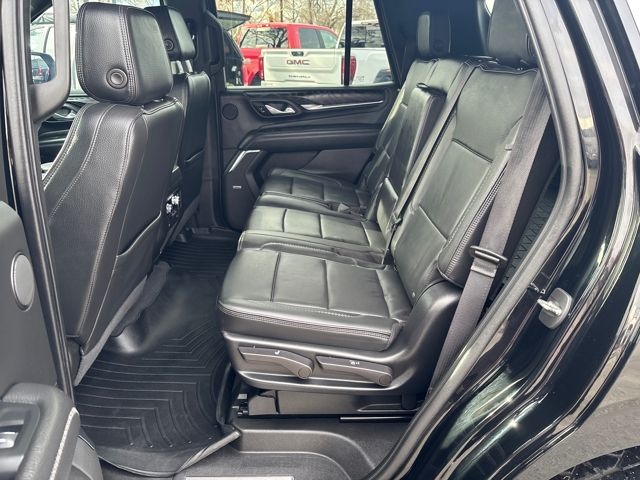 The Yukon Denali's interior is a true sanctuary, with luxurious perforated leather seating surfaces, heated and ventilated front seats, and a premium Bose 14-speaker surround sound system. The power-folding third-row seat and power-release second-row seats provide exceptional versatility, allowing you to tailor the cabin to your needs.